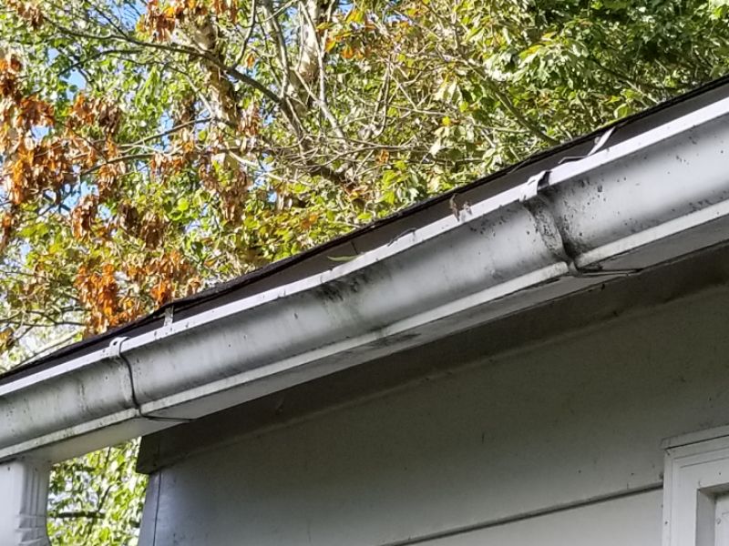 The gutters have inadequate support brackets. This can allow them to loosen, sag, and leak resulting in damage to other materials and components. Replace the brackets or install new brackets.