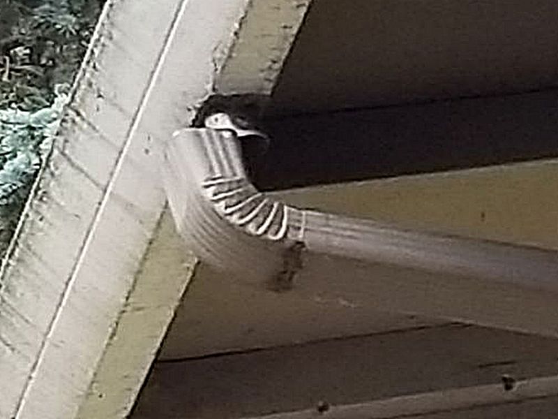 The downspout is too short. This affects the downspout extension’s ability to carry roof run-off water away from the foundation. Repair or replace the downspout.